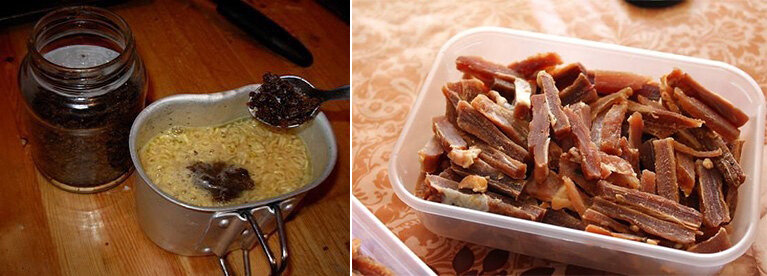 - Заготовьте дома заранее сушеный фарш, вяленое мясо или солонину.