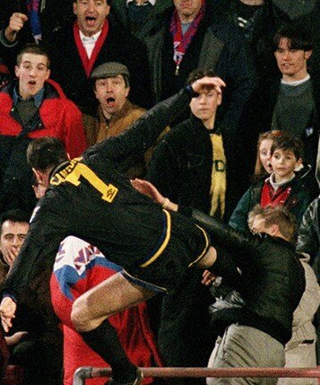 Хабиб Нурмагомедов на 9 месяцев отстранен от боев MMA после атаки на болельщика Конора Макгрегора. В мире футбола тоже был подобный эпизод, когда Эрик Кантона атаковал фана "Кристал Пэласа". Игрок МЮ в порыве ярости ударил фаната ногой в грудь за оскорбительные выкрики в свой адре: "Съ***сь обратно в свою Францию Ё**нный французский ублюдок". Ему по решению суда пришлось выплатить 20 тысяч фунтов и 120 часов работать в качестве детского тренера в академии Манчестер Юнайтед. После он заявит следующее: "Когда чайки летят за траулером, они думают, что сардины выбросят в море". Этот инцидент только помог Эрику стать всемирно известным. Он подписал дорогостоящий контракт с Nike, который намного дороже, чем заплаченный штраф. Эпизод произошел 25 января , а выйти на поле Кантона смог только 1 октября в матче с Ливерпулем. По сути, Кантона тоже не играл в большой футбол в Англии почти 9 месяцев. Он сразу же в первом матче на 2 минуте отдал голевую передачу а потом и сам забил с пенальти.