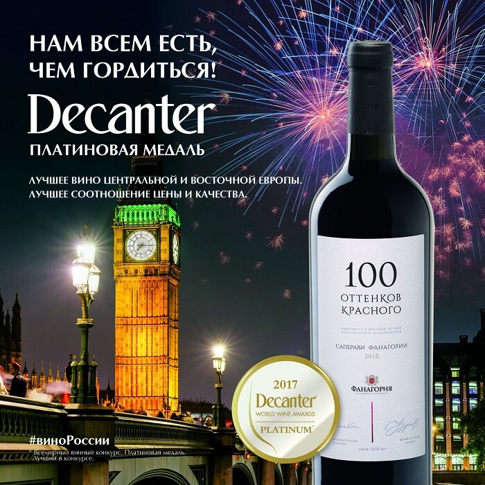 Вино «100 оттенков красного» сорта саперави — герой и платиновый призёр конкурса Decanter 2017 с 95 баллами из 100. А на vivino.com всего 3.9. Цена, как и оценки, колеблется от 990 руб до 1500! Попробуем.