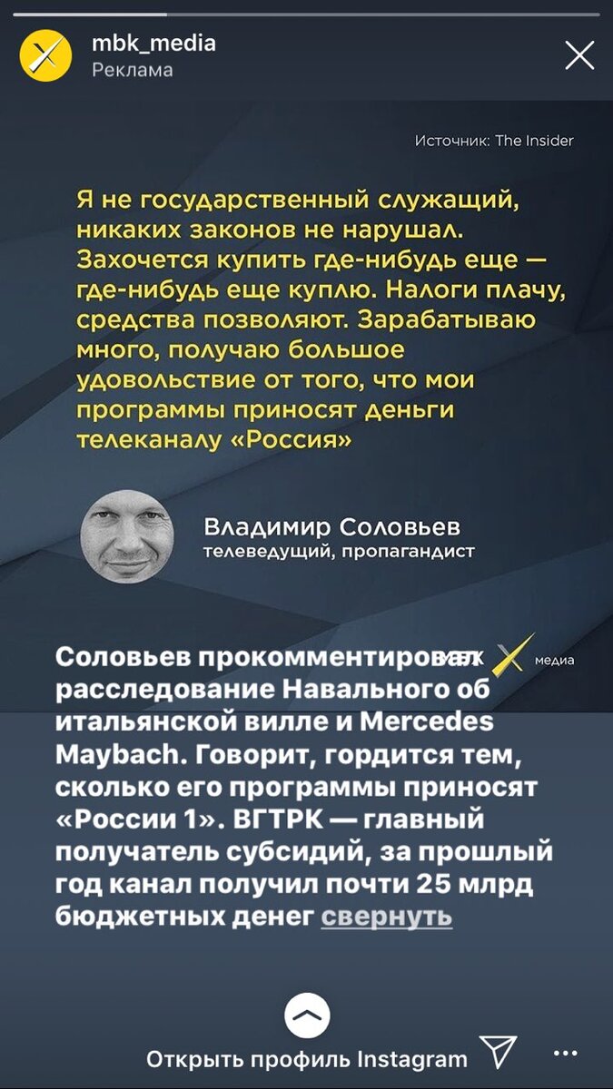 МБХ Медиа накануне прокомментировало ответ Владимира Соловьева на расследование А. Навального о зарубежной недвижимости телеведущего. Акценты СМИ М. Ходорковского сделало на том, что В. Соловьев является сотрудником ВГТРК, получившего только в 2018 году 25 миллиардов бюджетных денег. Вот только сотрудники Ходорковского явно укололи не туда. Можно как угодно относиться к Соловьеву, но стоит признать ВГТРК, хоть и принадлежит государству, но вынуждено работать в условиях рыночной экономики, простым языком – зарабатывать деньги. Финансовая отчетность за 2018 год еще не опубликована, потому что, как знает любой образованный человек, все коммерческие юридические лица сдают ее в апреле следующего года. А вот за 2017 год данные вполне себе открытые. Так вот, ВГТРК, основное юридическое лицо, в которое поступают деньг федерального бюджета – прибыльная структура. А это значит, что Соловьев действительно вносит вклад в благосостояние телерадиовещательной компании и, надо полагать, не малый. Пере