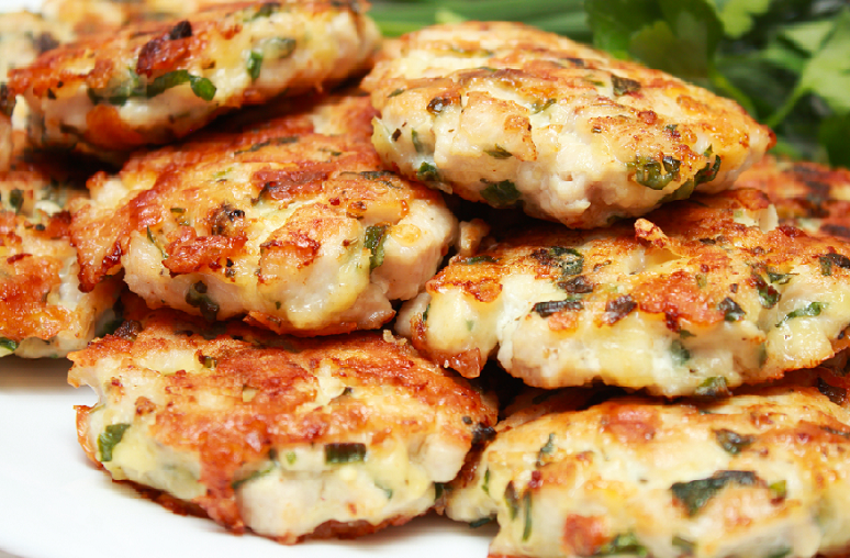 Сочные рубленые шницели из куриного филе с зеленью и сыром на сковороде