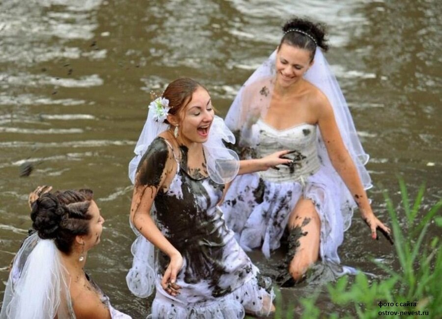 У шотландцев существует странный обычай во время свадьбы: все родственники и друзья выражают свою любовь, поливая невесту…грязью. Грязь может быть вперемешку с тухлой едой, кислым молоком, мукой, соусами…Считается, чем больше будет испачкана невеста, тем легче ей будет проходить через возникшие жизненные трудности. Если девушка выдержит это испытание, ее брак будет легкий и счастливый. Распиливание дерева