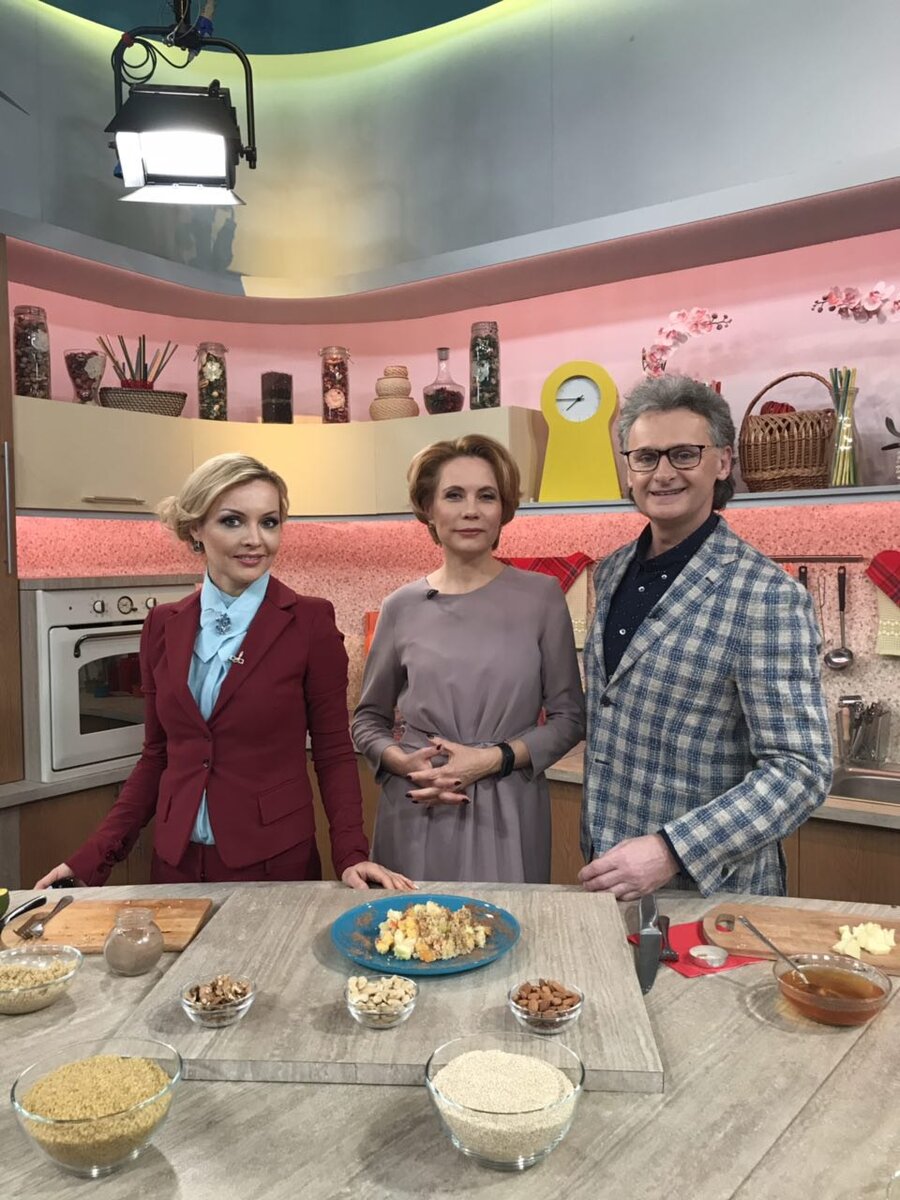 На этой неделе в эфире утренней программы «Включи настроение» на ТВЦ мы вместе с ведущими говорили о каше и разбирались в непривычных для русского человека крупах: кус-кусе, булгуре и киноа. Давайте и мы сравним их полезные свойства, а в конце статьи Вас ждет рецепт вкусного и питательного завтрака с одной из этих круп! Польза круп Вообще крупы важная часть здорового рациона благодаря их пищевой ценности и большого количества питательных веществ. Однако стоит помнить о высоком содержании углеводов в большинстве круп. Давайте вместе разберемся, «с чем их едят» и все ли крупы одинаково калорийны. Углеводы. По количеству углеводов явный лидер кус-кус (72г.), а меньше всего их содержит киноа (64г.). Жиры. В киноа больше жиров (6г.), чем в булгуре (1,3г.) и кус-кусе (0,6г.), но это крайне важные и нужные полиненасыщенные и мононенасыщенные жирные кислоты – омега-3 и омега-6. Наш организм их не вырабатывает и может получить только вместе с пищей. Белки. По количеству белков снова лиди