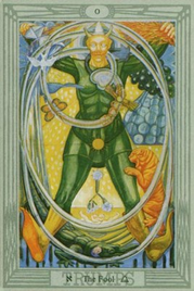 Дурак представлен богом Весны, Дионисом. Зеленый цвет напоминает нам о мощной творческой силе Весны, Крокодил (древнеегипетский бог творчества) также несет величайшие творческие силы.