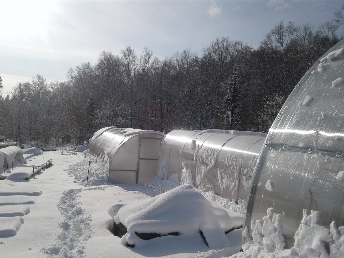 И снова, здравствуйте. В прошлой статье я начала рассказывать о своём опыте выращивания ремонтантной малины в теплице. У этого способа существуют и плюсы, и минусы. Самый большой минус- это немалая стоимость теплиц и их установки, если у вас нет возможности устанавливать самостоятельно. Так же средства понадобятся на установку полива. Если вы решите поливать дедовским способом - лейкой, то очень скоро ваша спина вам подскажет, что идея неудачна. Впрочем можно поливать и шлангом. Всё зависит от ваших возможностей и величины плантации. Но необходимо учесть, что малине в теплице потребуется влаги вдвое больше, в сравнении с выращиванием в открытом грунте. Но достоинств такого метода гораздо больше. Первое, и самое главное то, что малина успевает отдать весь урожай. Дело в том, что климат Сахалинской области отличается очень коротким летом. Ремонтантная малина в открытом грунте просто не успевает вызревать. Под снег уходят целые гроздья не вызревших ягод. Можно, конечно, выращи
