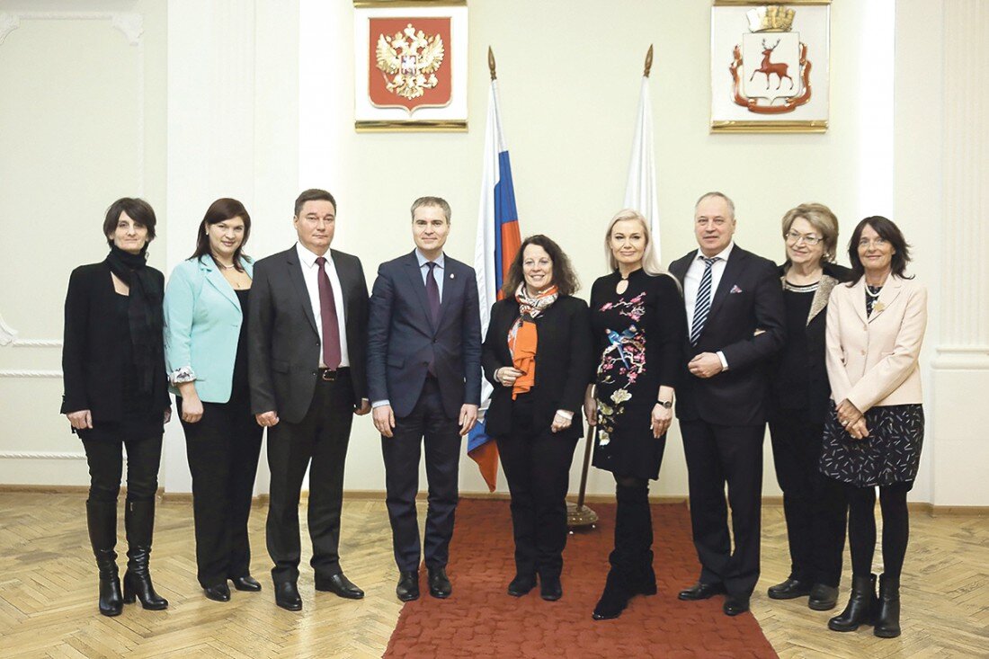 На минувшей неделе в Нижегородской области с официальным визитом побывала французская делегация во главе с чрезвычайным и полномочным послом Франции в России Сильви-Аньес Берманн. Госпожа посол провела несколько важных встреч с руководителями региона и областного центра, которые касались расширения сотрудничества в сферах промышленности, образования, науки и туризма. Первая официальная встреча французской делегации состоялась в правительстве Нижегородской области.«Я счастлива возможности посетить ваш прекрасный регион, – отметила Сильви-Аньес Берманн. – Цель моего визита – конечно, укрепить отношения в области экономики, культуры, науки и других областях. Есть французские предприятия, которые заинтересованы в развитии, – это “Леруа Мерлен”, “Сен-Гобен” и другие. Мы будем расширять наше сотрудничество». «Мы обсудили с госпожой послом ряд экономических проектов, – сообщил вице-губернатор Нижегородской области Евгений Люлин. – Это реализация в Нижегородской области инвестпроектов с фра