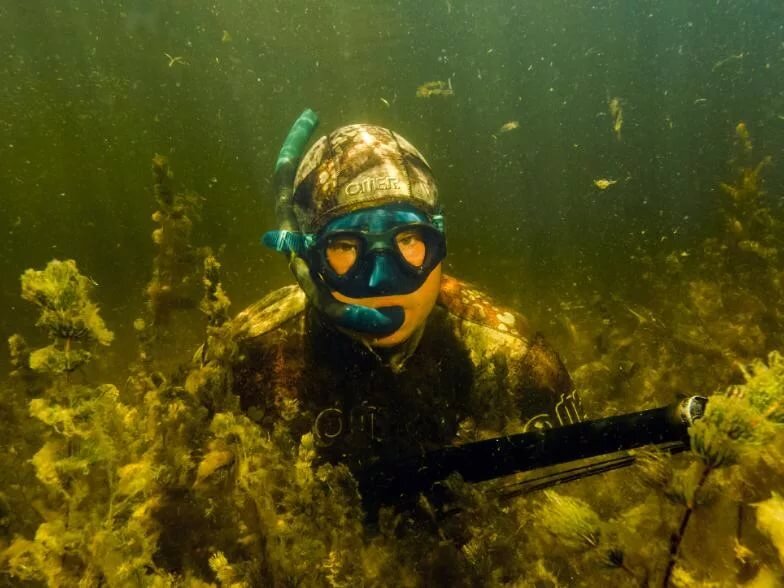 Охотиться можно и с поверхности. Пристреляйте ружье. Поймите, как оно работает. Через какое то время, вам захочется нырять)))