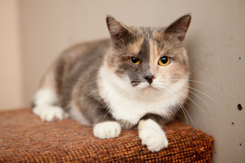 Знакомьтесь - Ксюша. Чье-то ласковое и немного пугливое трехцветное счастье. Обладательница серого, с розовой крапинкой, носика, белоснежных усов и проникновенного взгляда. Ксюша давно бы стала самым изысканным украшением чьего-то дома, если бы не её робкий, скромный характер. Попавшая к нам в «Муркошу» из «нехорошей квартиры», Ксюша с недоверием относится к людям и вместо того, чтоб по примеру своих хвостатых соседей, привлекать к себе внимание, вот уже третий год тихонько наблюдает за происходящим вокруг. Слишком трудно нашей красавице сделать первый шаг, хотя она изо всех сил старается побороть свои страхи. Мы решили немного помочь нашей грустной гостье и опубликовать ее робкое письмо будущему хозяину: "Здравствуй, мой долгожданный, самый дорогой человек. Меня зовут Ксюша и я жду встречи с тобой уже третий год. Я все еще стесняюсь привлекать к себе внимание и иногда прячусь в уголок вольера. Но я верю, что не смотря ни на что, ты заметишь меня. Остановишься напротив моего временног