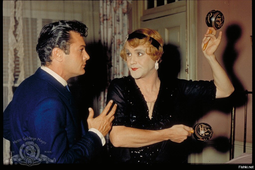 "Не сегодня, Джозефина". Так изначально назвал этот фильм режиссёр Билли Уайлдер. В процессе съёмок поменялось абсолютно всё - название, актёры, сюжет. Кёртис и Леммон были совершенно бесподобны в образах оркестранток Дафны и Джозефины. Они всё ловили на лету - женскую походку, смех, манеру говорить. Мэрилин Монро, наоборот, не могла сказать без ошибки ни одну фразу. Например, в коротенькой сцене, где Душечка ищет бутылку в ящике стола, актриса, изображающая из себя вместо дочери кондуктора "выпускницу" "Шебойгенской консерватории", должна была спросить простое: "Где бурбон?" Монро ровно 58 дублей спрашивала разное, но всегда неправильное: где виски, где бутылка, где бонбон, где бурнон и так далее. И каждый раз плакала, когда срывала дубли, и партнёры вполне оправданно злились на неё. После этого уже визажисты хватались за голову и начинали снова гримировать Мэрилин. Оправдывало её только одно - в это время она ждала ребёнка, которому не суждено было родиться. Так начинались съёмки