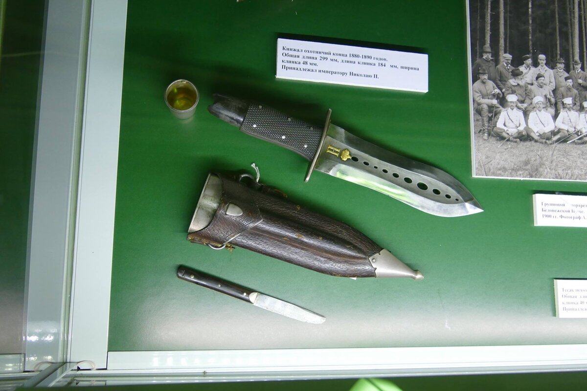 Трудно сказать насколько такой кинжал был полезен на охоте, да он красив и, наверное, уместен ближе к обеду. Но вот как он для добивания зверя или других охотничьих ратных дел? К сожалению не только отзывов об этом кинжале не удалось найти, но и фотографий на которых Николай II был бы с этим или подобным кинжалом. Фотографий же где Император Российский с кавказским или казачьим кинжалом довольно много, что подтверждает что носить холодное оружие император любил, а вот именно с таким кинжалом фотографий нет. Сам же кинжал можно увидеть и даже найти на различных аукционах в интернете. Причем исполнения этих артефактов довольно сильно разница, от очень похожего на оригинал, до смутно напоминающего его, как будто автор рисовал по памяти то, что видел мельком и не смог внимательно рассмотреть