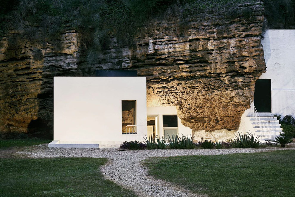 Расположенное в живописных предгорьях Сьерра-Морена в Испании поместье Куэвас-дель-Пино построено прямо в горных породах. В 2012 году испанское архитектурное бюро UMMO Estudio реабилитировало этот регион, чтобы создать новый тип сельского жилья и новые виды сельской местности. Пещерный дом площадью 340 м² может похвастаться особым пространственным оформлением — часть стен и потолков являются голыми горными породами. Остальное пространство имеет тихий и чистый характер — белые стены, деревянные панели и мебель. Сами помещения очень просторные и нет ощущения, что находишься в пещере. Естественное освещение поступает за счет окон, выходящих на южную сторону. Вся мебель выполнена вручную, что вносит еще более аутентичное значение первобытному дизайну.