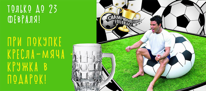 Новая суперакция к 23 февраля! При покупке любого кресла-мяча - кружка в подарок!