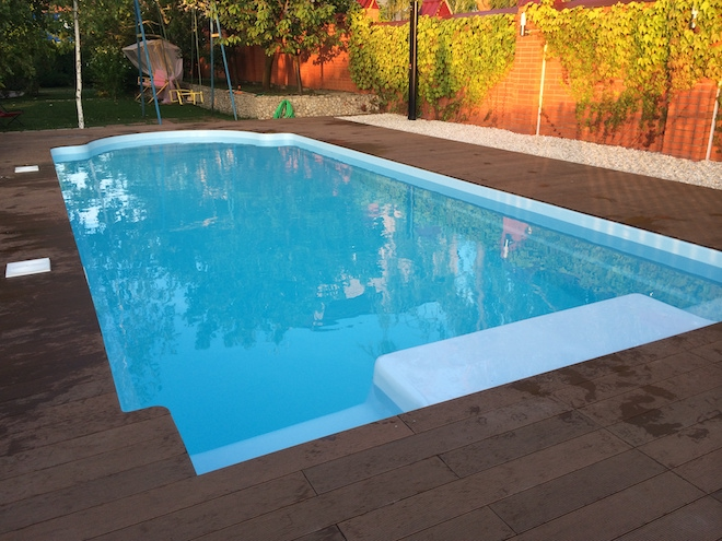 Террасная доска для бассейна используется, конечно, не для самой чаши для купания, а вокруг нее, чтобы людям было удобно и безопасно ходить вокруг нее, расположить на подиуме шезлонги, лежаки, полотенца, обувь. Сначала может показаться странным, что доска используется для отделки бассейна, так как присутствует постоянная влажность. Но стоит для начала обратиться к ее свойствам, чтобы понять возможность ее применения для такого вида «мокрых» объектов. Террасная доска для бассейна: за и против Подиум для бассейна открытого типа из террасной доски начали делать не так давно. Чаще для этих целей применялся камень. Но после обустройства декингом стало понятно, что это отличный вариант. Все дело в положительных свойствах материала: Из минусов террасной доски вокруг бассейна, можно выделить такие: Кроме того, может потребоваться периодическая замена протекторного слоя. Террасная доска для бассейна чаще всего изготавливается из древесно-полимерного композита, когда в составе имеется древесная