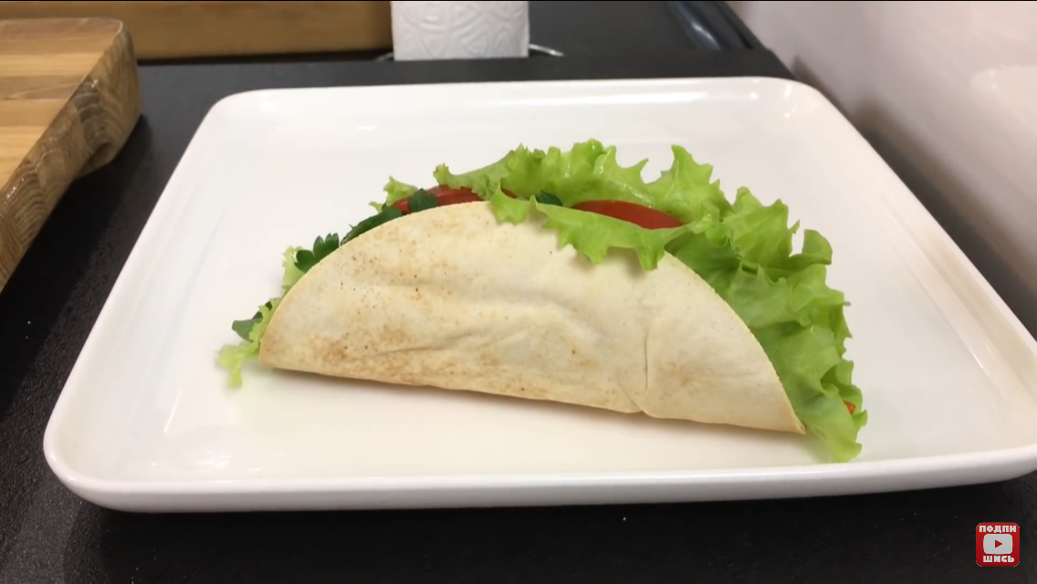 Всем привет на канале TASTY FOOD! Если Вам хочется приготовить что то очень вкусное для просмотра фильма или просто для домашних посиделок.Приготовьте блюдо которое я Вам предлагаю. Ингредиенты: Мясо говядины необходимо нарезать. Обжаривать говядину буду на растительном масле на раскалённой сковородке. Нарезаем лук,морковь и болгарский перец. Мясо обжаривал в течении 15 минут,полностью испарилась жидкость и оно полностью подрумянилось. Самое время мясо посолить и поперчить. Отправляем к мясу овощи,а также консервированную красную фасоль и всё тщательно перемешиваем. Из лепешек нужно сделать конвертики.На фото будет показано как это сделать И отправляем их в предварительно разогретую до 180 градусов духовку на 5-7 минут,закрепив их как на фото Овощи с мясом обжаривались примерно 15 минут,их я постоянно помешивал.Обязательно пробуйте на соль. Нарезаем помидор. К этому блюдо хорошо подходит зелень.Нарезаем петрушку не очень мелко. Прошло 7 минут,и наши конвертики полностью держат форму.Т