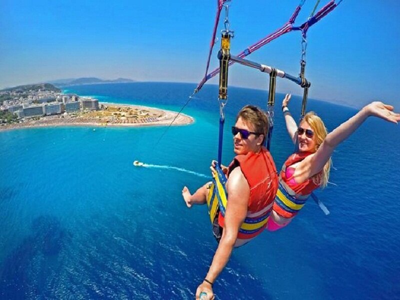 Парасейлинг в хургаде полет на парашютах. Парасейлинг в хургаде полет на парашютах является популярным развлечением во многих курортах мира. Плавание под парусом активный вид отдыха, при котором человек закрепляется с помощью длинного троса к двигающемуся транспортному средству (к катеру) и благодаря наличию специального парашюта парит по воздуху. подробная программа Парасейлинг (полеты на парашюте за катером проводятся каждый день), кроме безветренных дней. Полет длится примерно 20 минут, парашют на буксире моторной лодке. -Вы парите на высоте птичьего полета (80 м) над лазурной гладью моря вдали от шума и суеты. Специальные навыки не требуются, каждый может сделать это в одиночку или с напарником. -Выезд ежедневно с 11:00 до 15;00 (можете бронировать когда вам удобно) дети от 6 лет могут полететь Туристы Отдыхающие в районах (Сахл Хашиш-Макади Бей-Сафага) оплачивают +5 $ трансфер Общий вес двух человек не должен превышать 150 кг. с собой брать — Полотенце