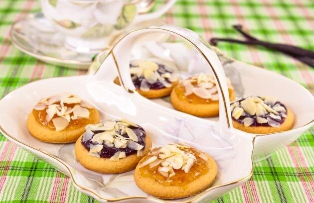 Maktab chog’larida bunday pechenyalar juda sevimli yeguliklardan biri edi. Endilikda ularni uy sharoitida tez va oson tayyorlash imkoniyatiga egasiz. Bunday shirinliklar bolajonlarga ham juda manzur bo'ladi. Kechki ovqatdan so'ng, oilangiz davrasida, issiqqina choy bilan iste'mol qilish uchun shunday pechenyalarni albatta tayyorlang. Kerakli masalliqlar: 150 gramm saryog' 150 gramm ahakar 3 dona tuxum 2 choy qoshiq vanilin va 1 dona vanilin tayoqchasi 2 choy qoshiq qabartma 350 - 400 gramm un Myrabbo ta'bga ko'ra Yong'oq ta'bga ko'ra Tayyorlash usuli: 1. Saryog'ni oshxona jomchasiga soling va shakar qo'shib aralashtiring. 2. Tuxumni ko'pirtiring va saryog'li massaga aralashtiring. 3. Vanilin tayoqchasini o'rtasidan bo'lib, urug'larini ajrating, yoki vanilin kukunidan foydalaning. 4. Tayyorlangan massaga vanilin, qabartma va unni solib, qattiq xamir qoring. 5. Xamirni 2-3 qalinlikda yoying va maxsus qolip yoki stakan yordamida kesib oling. 6. Kesilgan xamirlarni pergament qog'ozi yoz
