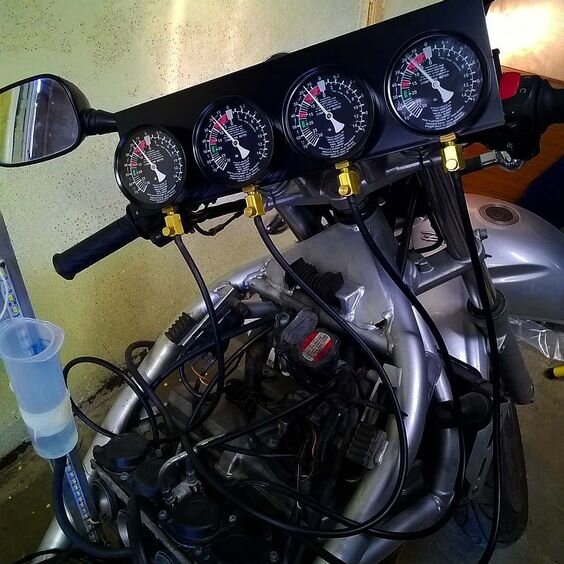 К сожалению, «стандартным» набором байкера (ключами, головками, болгарками) отсинхронизировать карбы невозможно. Все равно придется приобретать специальный инструмент – синхронизатор. Он производится фабрично, и еще на производстве рассчитывается в соответствии с разряжением, соответствующим ему в патрубках при работе мотора на холостых.