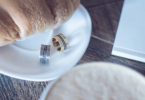Такие кольца появились очень давно, со времен зарождения христианства, и в древности представляли собой ободок с изображением хризмы или другого христианского символа. Их делали из серебра или золота, железа или меди. Позднее кольца с христианской символикой стали украшать, инкрустировать камнями, изображать на перстнях образы святых.