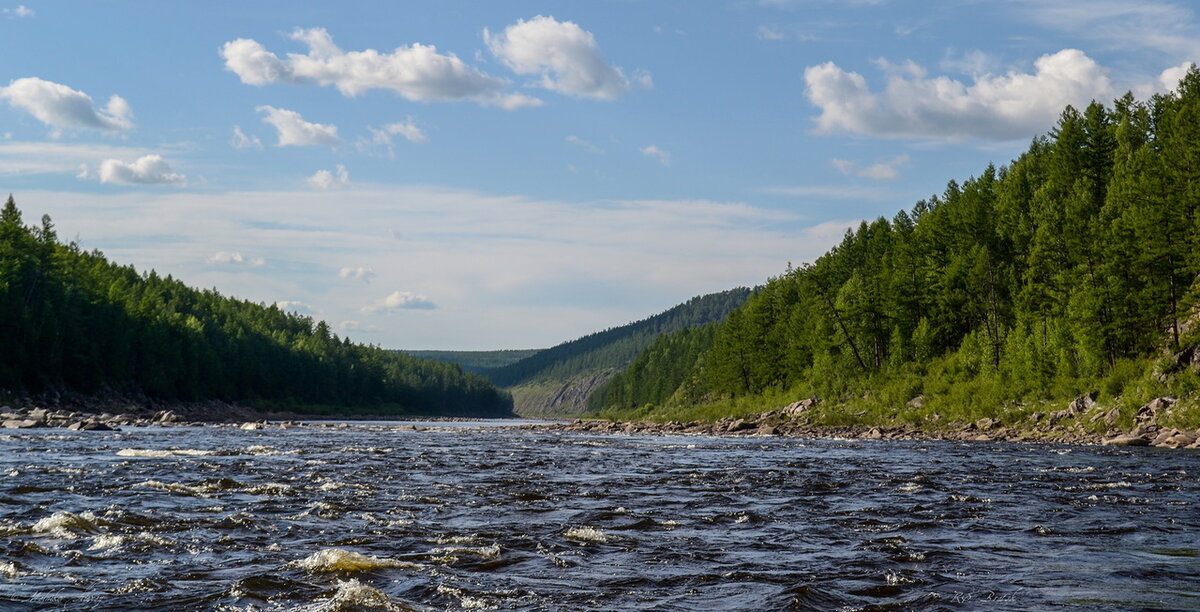 Идем, изредка сверяюсь с «лоцией», чтобы знать свое местоположение относительно шивер, прижимов (которые описаны в «лоции» как очень опасные и требуют к себе повышенного внимания). Много километров мы ждали и высматривали ориентиры прижимов, от которых нужно уходить как можно активнее(п