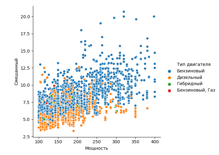 Многие автовладельцы знают, что дизельный двигатель более экономичный, чем бензиновый. При постоянно растущих ценах на топливо этот факт становится одним из аргументов при выборе автомобиля. В этой статье мы не будем рассматривать такие характеристики двигателей, как шумность, стоимость обслуживания, тягу на низах или благородное тарахтение. Разберем статистику, насколько экономичнее дизель чем бензин при одинаковой мощности. Как будем анализировать? У нас есть база по расходу более 50 тысяч модификаций автомобилей, выпускавшихся в последние десятилетия. С помощью инструментов анализа больших данных на языке Python мы получили картинку, как зависит расход от мощности. Какие автомобили попали в выборку Зависимость очевидная - если хочешь больше мощности, то смирись с большим расходом. Из графика видно, что при одинаковой мощности расход у дизельного двигателя всегда меньше, чем у бензинового. Например, при мощности 150 лошадиных сил дизель может кушать около 4 литров, а большинство бенз