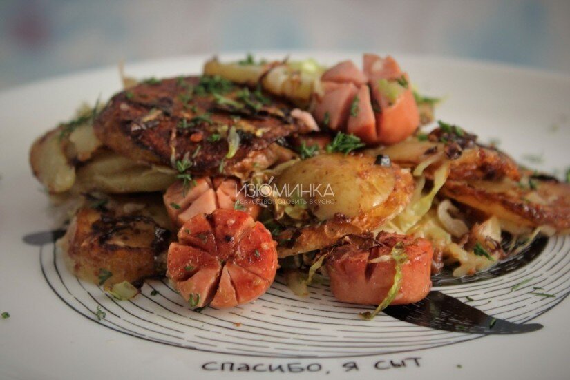 Жареная картошка с капустой и колбасой – это не высокая кухня, не праздничное угощение и даже не приятный для собственного сознания представитель ЗОЖ-а. Это всего лишь демократичная жареная картошечка, с румяной корочкой, хрустящими бочками, с сочной капустой и классным дополнением в виде колбасок. Всего лишь. Но какая же она вкусная, эта картошечка! Как приготовить жареную картошку с капустой и колбасой? Ингредиенты: 6-7 картофелин; 1/2 головки молодой капусты; 1 луковица; 70 г сала или растительное масло для жарки; 300 г колбасы (любой); соль, перец, зелень по вкусу. Инструкция Подробный пошаговый рецепт с фотографиями можно посмотреть на сайте в заметке "Жареная картошка с капустой и колбасой". Другие интересные рецепты на второе можно найти в разделе "Рецепты на второе". Подписывайтесь на наш канал, чтобы читать новые заметки. Если вам понравился этот рецепт - ставьте лайк, чтобы видеть больше наших заметок в своей ленте Яндекс.Дзен!