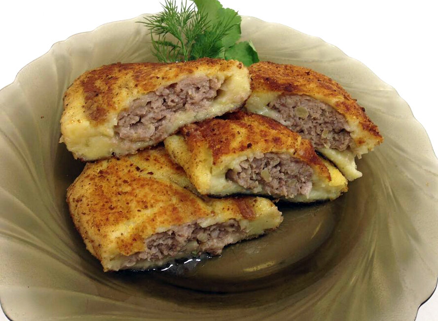 Испокон веков белорусы отдавали предпочтение натуральным продуктам и сытным блюдам, приготовленным из них. В сельскохозяйственной стране, где превалировала работа в поле и со скотиной, уставших домочадцев надо было кормить до отвала. Поэтому основная пища белорусов – и в старину, и сегодня – картошка, мясо, сало, каши, грибы, сметана, творог, яйца. Эти продукты не сходят со столов, а приготовить из них можно массу разной вкуснятины. Хотим познакомить вас с одним из знаковых вторых блюд белорусской кухни. Картопляники – картофельные пирожки с мясом внутри, обжаренные до золотистой корочки. При подаче их поливают щедрой порцией сметаны. Для 4-5 порций ингредиенты • картошка разваристая – 600 г;