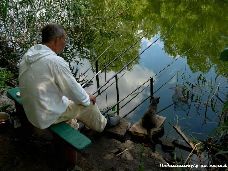 По молодости выезжали мы компанией на рыбалку. И ведь не лень было из Москвы на Волгу пилить каждую пятницу, а каждое воскресенье обратно. С весны до осени. Любимым местом был залив – с одной стороны на берегу деревеньки и дачники, а между ними и Волгой россыпь островков. К нашему традиционному стойбищу нужно было на лодке переправляться, на остров. Мы туда несколько лет подряд ездили, а потому уже со всеми рыбаками-«островитянами» перезнакомились. Был среди них и дядя Лёша, из местных. Он свой лагерь от нас метров за 20 ставил. Тоже на все выходные забирался под островные сосны за рыбой и покоем. Ну и чтобы в стороне от семьи предаться второму хобби – водочки на природе вкусить. Не один приезжал, а всегда со своей кошкой. Мы уже привыкли, что Машка не только с его удочек налог собирает, но и по другим рыбакам ходит. И так она привыкла «рыбачить», что когда котята у неё родились, она всё равно с дядей Лёшей каталась. А чтобы котята не голодали, ей хозяин «такси» заказывал. Если к