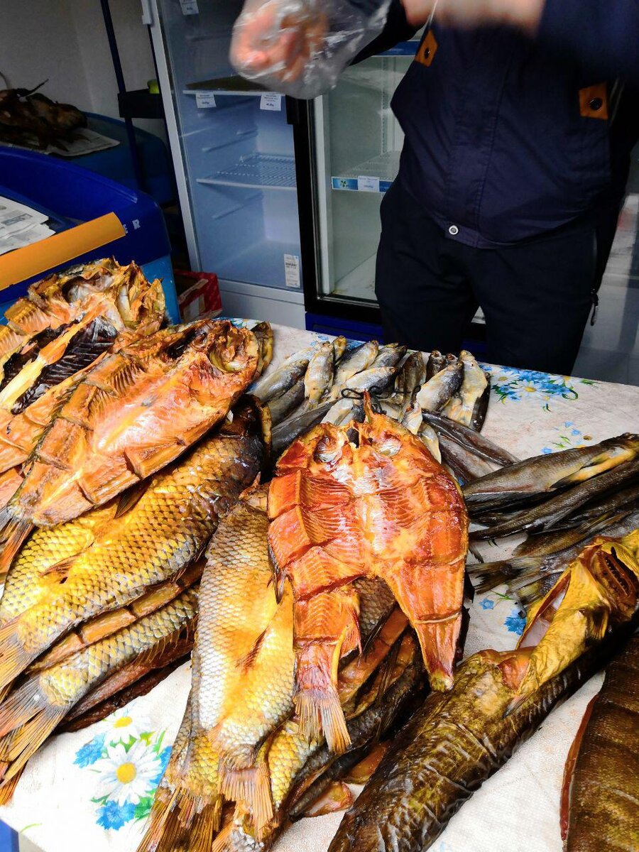 Для многих путешественников, передвигающихся на поездах, проблема питания в дороге очень актуальна. Во многих поездах по миру отсутствуют вагоны - рестораны и приходится либо брать питание с собой, либо покупать продукты на остановках. Я часто выхожу на остановках и присматриваюсь к продаваемой еде. Магазинные продукты стандартны и дороги. Поэтому аппетита они особо не вызывают. К примеру 2-х литровая пачка сока в магазине стоит в районе 100 рублей, в ларьке на перроне такая же пачка сока стоит 225 рублей, то есть в 2 раза дороже. А вот разные продукты, продаваемые местными жителями на перроне, иногда вызывают у меня усиленное слюноотделение. Так было и во время одной из моих последних поездок на поезде.Длительная остановка в одном из городов Липецкой области привела меня в палатку по продаже копчёной рыбы. Копчёное чудо, продаваемое на перроне, красивое на вид, цены от 200 до 300 рублей за штуку. Всегда смотрю с удовольствием на радующую взор рыбу, с вкуснейшим ароматом, н