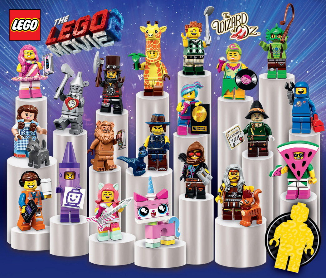 В серии 71023 The LEGO Movie 2 Collectible Minifigures будут представлены 20 персонажей из нового фильма, некоторые из которых имеют перекрестную лицензию с Волшебником страны Оз. Злая Ведьма Запада и ее летающие обезьяны появились в LEGO Batman с такими наборами, как The Ultimate Batmobile, и похоже, что остальная часть героев появляется в LEGO Movie 2.
