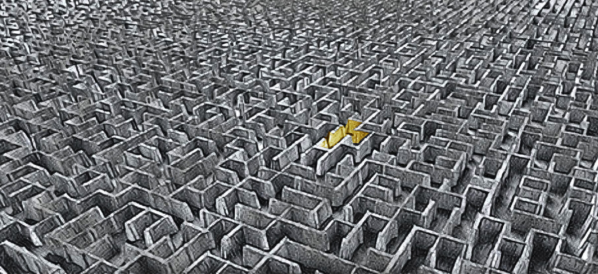 “Нет-нет, просто где-то свернул не туда. Чуть-чуть заплутал. Сейчас вернусь и выйду к городу!”. Он снова оказался у дверей с надписью “Информаторий”. Огляделся, решил идти в другую сторону. Через полчаса солнце закатилось за горизонт, а вскоре пропало и зарево. Лабиринт окутала тьма.
