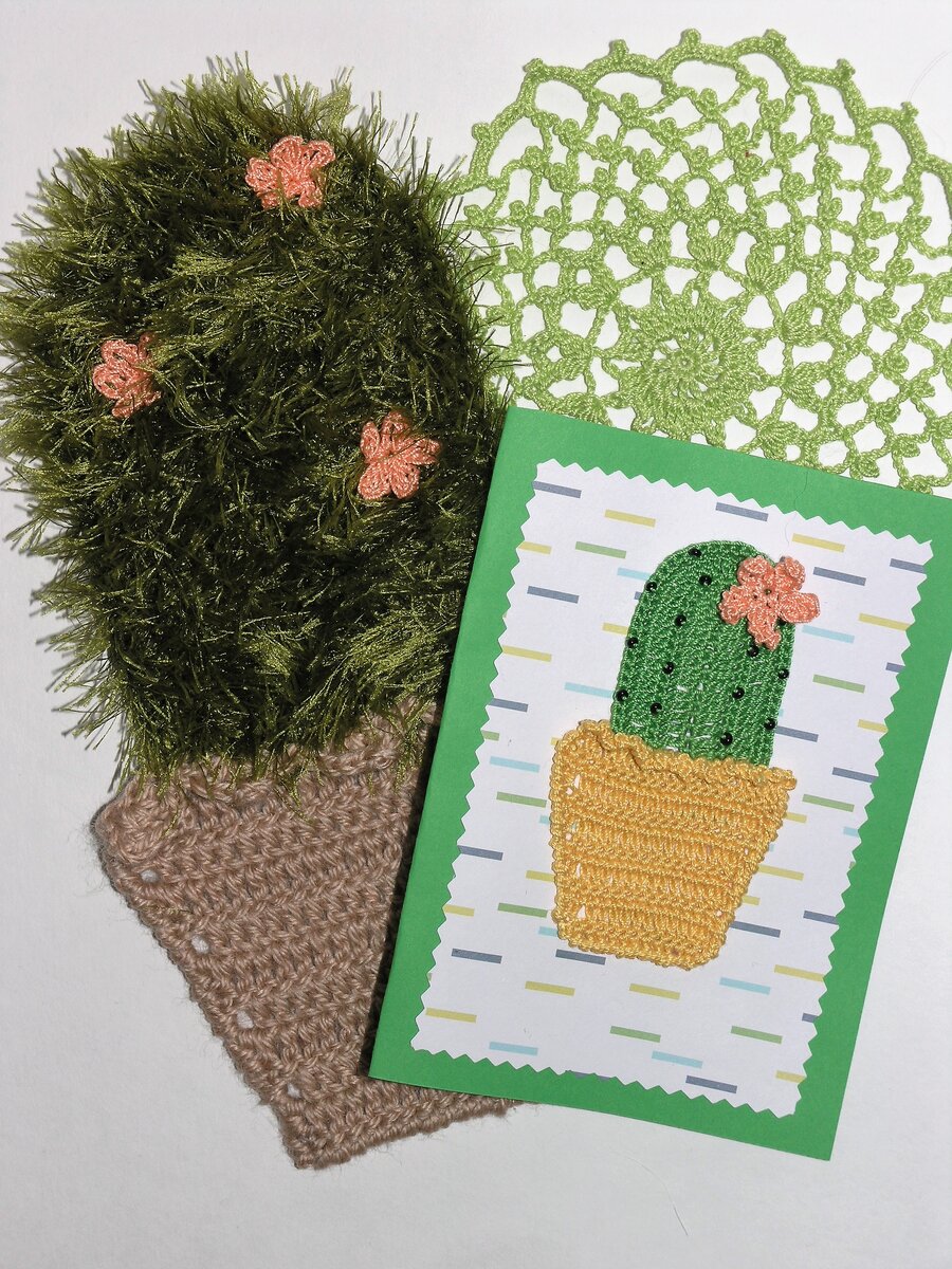 Кактусы – растения теплолюбивые, необычные, колючие. «Кактусная» тема популярна в вязании. Обыграть растение можно любой пряжей, в разных ракурсах. Простор для фантазии огромен. Вот и я связала два кактуса за пару часов. Кактус-прихватка В запасах много зелёной «Травки» разных оттенков. Хотела связать развивающий коврик, но пока руки не дошли . Может, подобная пряжа не практична для прихватки, но вдохновение спугнуть ещё хуже. Для горшочка использовала полушерсть. Толщина пряжи одинаковая, вязала одним крючком. Маленькие цветочки – из хлопка. Как связать кактус 1 ряд - набрать 20 воздушных петель (вп). Обвязать цепочку с обеих сторон столбиками с накидом (ссн). В первую петлю цепочки сделать 6 ссн. Всего 44 ссн. 2 ряд - вязание повернуть, продолжить ссн, в верхней части (там, где кактус закругляется) равномерно сделать 6 прибавок (прибавка – 2 ссн в один ссн предыдущего ряда). Всего 50 ссн. 3 – 7 ряды – вязать по подобию 2 ряда, равномерно прибавляя 6 ссн. В середине 7 ряда сделат