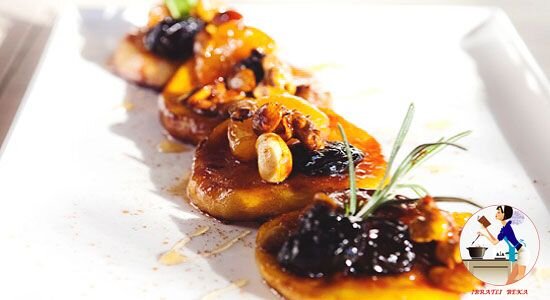 Karamellangan olma, ayniqsa, bolalar uchun quvonch bag'ishlaydigan shirinlik bo'ladi. Hatto kattalar ham bunday shirinlikga qarshi bo'lishmaydi. Ushbu tayyorlangan olmalar juda ham mazali va chiroyli ko'rinadi. Tayyorlanishi juda ham oddiy, tayyorlash uchun esa masalliqlar yilning hamma faslida mavjud. Kerakli masalliqlar: 2 dona olma 100 gramm shakar kukuni 2 osh qoshiq o'simlik yog'i Jambul shoxchasi Limon sharbati Dolchin (koritsa) Yong'oq va qurigan mevalar (mayiz, o'rik) Tayyorlanish usuli: 1. Shakar kukunining yarmini 1 osh qoshiq suv bilan eriting. Past olovda, doim aralashtirgan holda saryog'ni qo'shib, karamel tayyorlang. 2. Olmalarni tozalang va yumaloq shaklda kesing. Tayyorlanayotgan karamelga qo'shing va 1 daqiqa davomida dimlang, hushbo'y hidi uchun jambul shoxchasini qo'shing. 3. Maydalangan, qurigan mevalarni qo'shing. Shakar kukunining qolgan qismi, dolchin va limon sharbatini qo'shib, extiyorkorlik bilan aralashtiring. 4. Tayyorlangan olmalarni ehtiyotkorlik bila