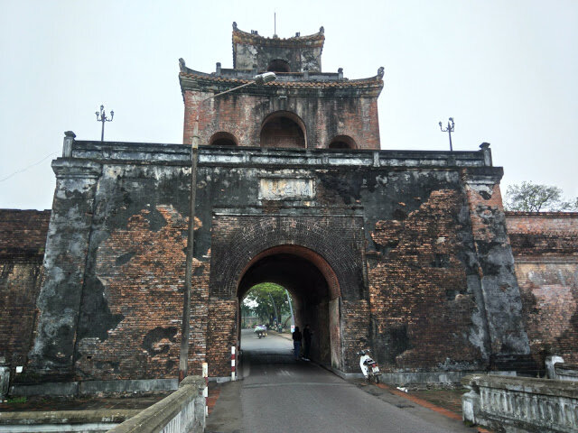 За окном все тот же мелкий и противный дождь, в Хюэ или Хуэ (в переводе c вьетнамского «Гармония») у меня ровно один день отдышаться, отдохнуть и снова в путь. Все достопримечательности можно в принципе глянуть одним днем, это гробницы императоров и запретный город, ну остальное так по мелочи. Гробницы разбросаны по всему городу и до них можно добраться только на транспорте, а на улице, как вы помните моросит. А вот Запретный город самая главная историческая достопримечательность не только Хюэ, но и всего центрального Вьетнама. Так сказать, памятник культурного наследия, входящий в список ЮНЕСКО. Вон, только лес речку перейти и город-крепость перед тобой. Туда-то я сегодня и направлюсь. Строительства огромной Цитадели (Кинь Тхань), началось в 1804 году под руководством императора Зя Лонга и закончилось только в 1832 году. Крепость неправильной четырехугольной надо сказать получилась весьма внушительной, шутка ли десяти километров толстенных каменных стен высотой 6 метров. Внутри этих