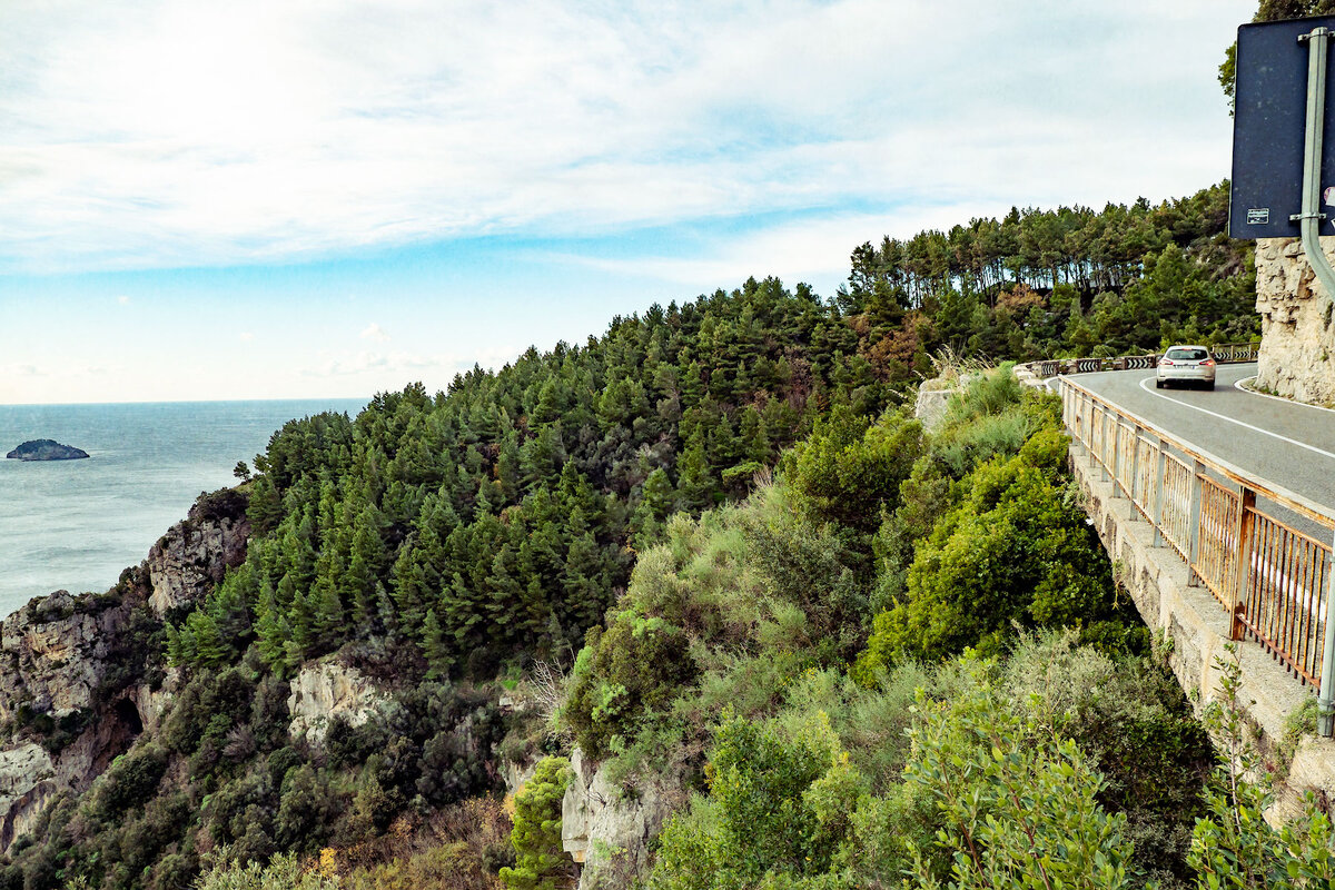 Дорога вдоль Амальфитанского побережья считается одной из самых красивых, а попавшие на нее рассказывают, что это настоящий Ад, а не увеселительная прогулка. Чтобы выяснить, так ли она страшна, мы отправились на юг Италии. Что та самая "адская" дорога началась вы поймете сразу: проезжая часть сужается, с одной стороны тянется каменная стена, а с другой - обрыв. Впрочем, риск свалиться в пропасть невелик. Это не высокогорные дороги в Альпах, где после пересечения границы Италии ограждение кончается. Открывающийся с дороги вид очаровывает даже бывалых путешественников, хочется останавливаться каждые пятьсот метров и озираться по сторонам. Парковки или расширения обочины предусмотрены здесь часто и автомобиль на них помещается легко. Если есть свободное место... Хотите лайфхак? Отправляйтесь в путешествие по югу Италии зимой и вам гарантировано наличие парковок, свободных мест в отелях и комфортная погода, пусть и с сильным ветром. Летом тут будут толпы туристов, толкотня, мотоциклы и мот