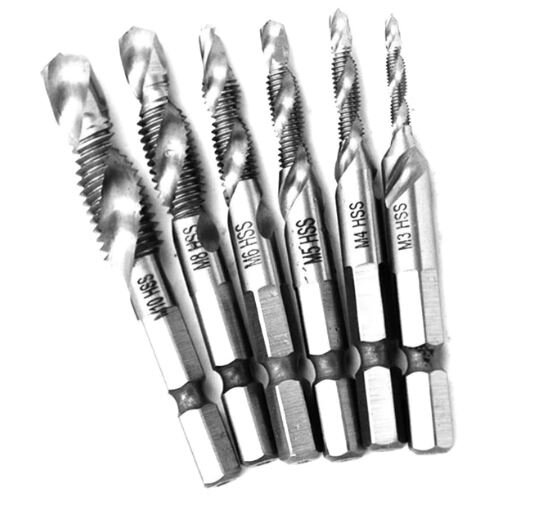 Все мы знаем, как нарезать резьбу – просверлить отверстие, взять метчик, вороток и начать крутить. Когда-то на уроках труда обучали. Можно, конечно, и на токарном станке. Но у кого он на балконе или на даче имеется? Конечно, в гараже у кого-то и есть… А можно ли нарезать резьбу сверлом? Да еще и при помощи обычного шуруповерта? Еще месяц назад я бы не поверил, но оказывается можно. Для этого существуют специальные сверла. Дистальная часть сверла обычная, а ближе к основанию сверло превращается в метчик. Ну и хвостовик сверла – классический шестигранник, как у любой биты для шуруповерта. Сложно подсчитать сколько раз за прошедшее лето меня выручало данное устройство, когда надо было нарезать резьбу на даче в различных поделках. Место данные метчики не занимают – валяются в сумке в багажнике машины, но всегда под рукой. И о гайках думать не надо. Да и не всегда удобно их использовать – лучше нарезать резьбу прямо в «теле» заготовки. Конечно, есть свои нюансы – не надо использовать высок
