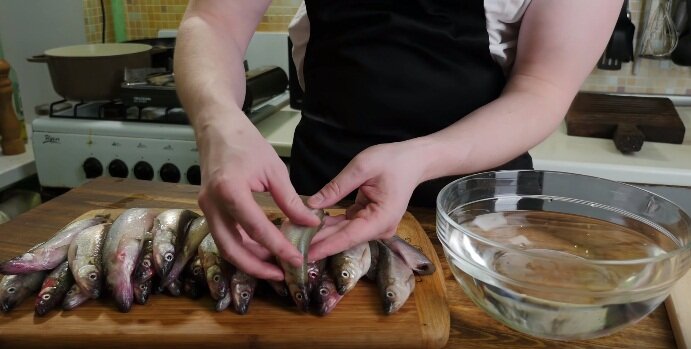1. Чешуя у корюшки нежная, поэтому снимать ее не надо. Достаточно будет хорошо ее промыть. Рыбку маленькую потрошить не обязательно, а экземпляры покрупнее от внутренностей советуем избавить.
