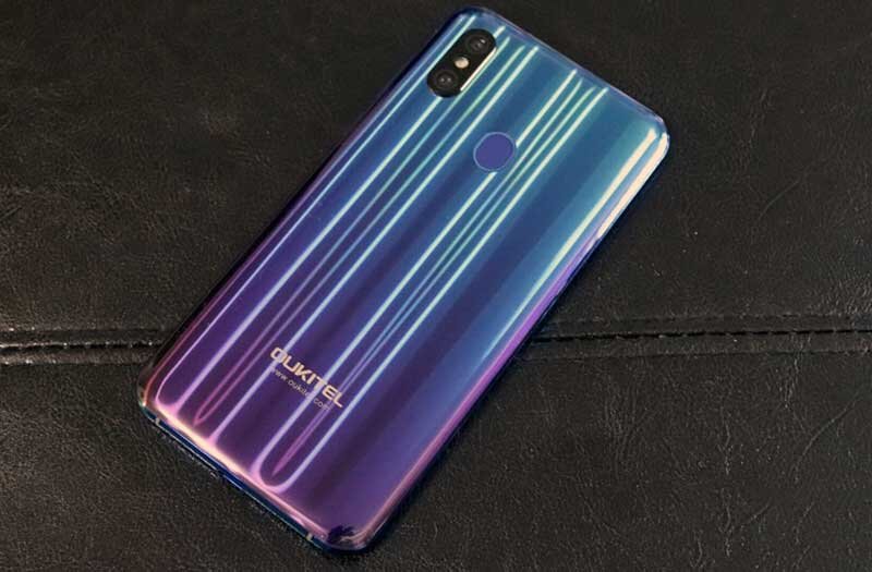 OUKITEL обычно выпускает защищённые телефоны, которые не отличаются каким-то стилем. Однако, U23 получился симпатичным, цвет корпуса градиентный – от синего к тёмно-фиолетовому, который меняется в зависимости от угла обзора.