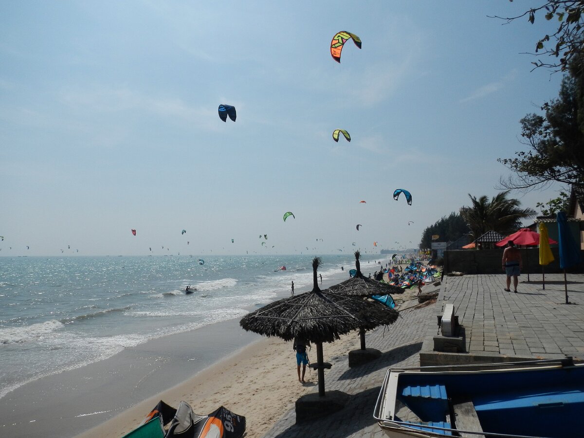 Сегодня я расскажу вам о небольшой моём опыте активного отдыха во Вьетнаме. Было это в январе, в курортном "городе" Муйне. Если честно, городом здесь не пахнет, зато пахнет рыбацкой деревушкой :/ И весело в Муйне вам может быть только в одном случае – если вы кайтер! Кайтсерфинг (кайтинг, кайтбординг) – это такой вид спорта, когда тебя тащит большущий воздушный змей, гонимый ветром. В качестве поверхности подойдет любая ровная: снег, лед, вода. Для ног тоже есть варианты: сноуборд, коньки, доска. Весьма гибкий вид спорта, должна сказать. Так вот в Муйне просто мёдом намазано для любителей такого активного отдыха, как кайтинг. Очень уж удачно здесь сочетается протяженность пляжа, направление ветра и его сила. Естественно здесь огромное количество кайт-школ, которые готовы научить вас быстро и задорого гонять на кайте. Один мой товарищ когда-то сказал: "Все эти школы на пляжах – сплошное разводилово втридорога, сдерут с тебя денег, а научить не научат, так ещё и отмажутся, что просто