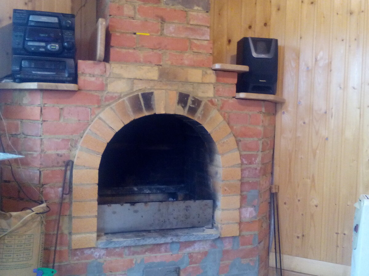 Привет. Часто бывая в гостях я иногда видел в домах камины. Естественно расспрашивал хозяев что да как с их каминами. Одинаковых не было вообще, все чем нибудь отличались. Так вот почти все говорили что если нужно разжечь камин то сначала надо разогреть дымоход, для этого нужно засунуть в дымоход ком газет и зажечь. Труба прогреется и можно разжигать камин, коптить он почти не будет, именно почти. Я всегда переспрашивал при каких условиях он коптит. Причины тоже называли разные(сырые дрова, сильный ветер, дрова со смолой и не прогретый дымоход). Выслушивая все это я решил , в доме камин не нужен, а в отдельном помещении почему бы и нет (тем более я хочу в камине готовить шашлык , когда идет дождь или сильный ветер или просто очень холодно). Ну раз решил нужно делать. Построил помещение 3,5 х 4 м и изучив кучу книжек начал ложить камин. Все было хорошо, положил быстро, делал по образцу, почти, дымоход как и на образце сделал 150 мм в диаметре и довел до конька здания. Зажег,