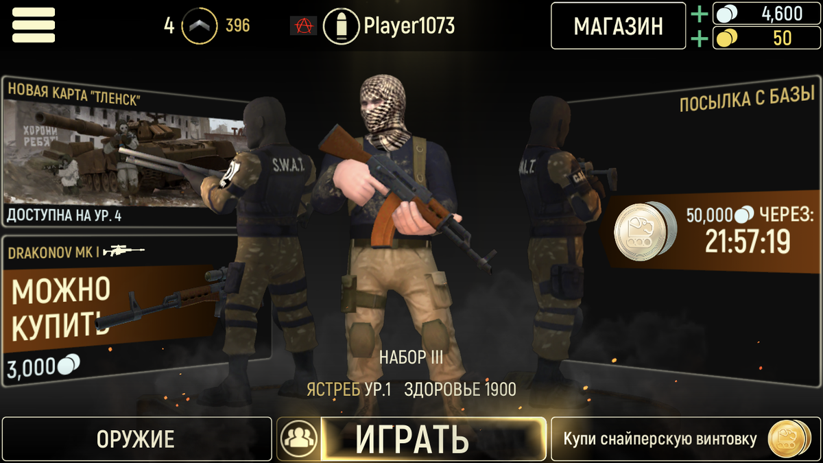 Tacticool — это захватывающий онлайн-шутер для Android и iOS, в котором нас ждут нескончаемые операции по ликвидации вражеских отрядов. Эта стрелялка порадует ценителей жанра оригинальным дизайном локаций с видом от третьего лица, качественной трехмерной графикой, отличной анимацией со спецэффектами и достойным звуковым сопровождением. Геймплей Tacticool Игровой процесс представлен в виде PvP-битвы на небольшом участке разгромленного города. Мы являемся частью команды, состоящей из пяти реальных геймеров, а против нас выступают такие же настоящие любители пострелять по врагам из различного оружия в том же количестве. Как уже было сказано, смысл каждого выхода в бой заключается в уничтожении вражеского отряда. Но фишка в том, что после уничтожения любого боевика, он воскресает через несколько секунд. Это же касается и нас, так что здесь все честно. Главное, уничтожить побольше боевиков из команды противника. В идеале для победы требуется набрать сто очков. Если по истечении выделенного