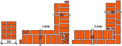 Кладка цоколя из кирпича//Однорядная система перевязки углов