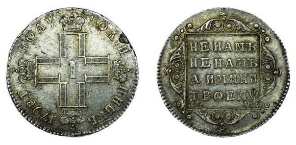 Павловские серебряные монеты не имеют традиционного портрета, вместо него – монограмма из 4-х перекрестных «П».