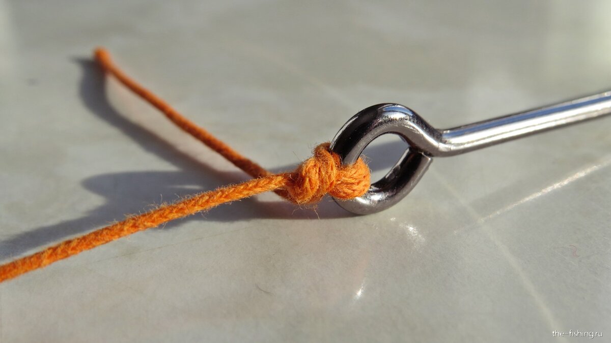 Восьмерка и простой двойной узел очень часто используются для создания петель в процессе монтажа различных оснасток, но могут служить и для привязывания крючков, вертлюжков или приманок. Благодаря простоте этих узлов, вяжутся они очень быстро даже начинающими рыболовами. Как привязать крючок двойным узлом С помощью простого двойного узла можно привязать крючок с колечком или лопаточкой, так как затягивается он на цевье. Этот узел вяжется так: Чтобы закрепить крючок, нужно провести цевье крючка сквозь кольца: И затянуть узел на цевье: Не забываем смачивать леску во время затягивания узла, это предотвратит деформацию лески. Если привязывается крючок с колечком, а не лопаточкой, леску можно пропустить сквозь ушко перед формированием узла (или после, если конец поводка свободен). При этом, леска должна выходить из кольца со стороны жала крючка. Как привязать крючок узлом "восмёрка" Хоть предыдущий узел и похож на восьмерку во время затягивания, вяжется восьмерка несколько иначе. Сам узе