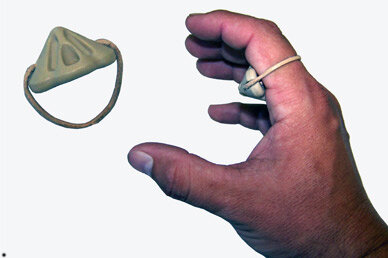 Компактное оружие самообороны. Сегодня я расскажу вам о очередном нелетальном оружии для самообороны. Прошлая статья на эту тему здесь - Манипулятор "Зубо". Griffin Grip переводится как хватка грифона. По сути это оружие предназначено для усиления, а точнее для создания болевых ощущений у нападающего при захватах и болевых приёмах. Оружие состоит из небольшого пластикового навершия с несколькими (2-4) отверстиями, в которое продевается веревка. Griffin Grip надевается на палец (в основном указательный или средний). Используется это оружие в двух вариантах. Первый вариант - это когда навершие находится снаружи ладони и таким способом можно наносить довольно болезненные удары. Второй - это когда навершие находится внутри ладони, тогда оно помогает усилить захваты. Первый вариант более опасный, так как при ударах отдача приходится прямо на пальцы. Так же Griffin Grip можно надевать на каждый палец, создавая некую связку. Хотя принято применять лишь одно кольцо. В итоге, Griffin Grip дост