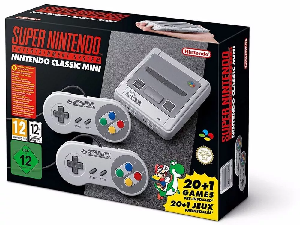 Бродя по торговому центру, или магазину Игровых приставок, можно заметить такую маленькую, ничем не приметную приставку. Она называется Nintendo Classic Mini: Super Nintendo Entertainment System. Сейчас я буду рассматривать её хорошие и плохие стороны, чтобы помочь вам сообразить: покупать такую приставку или нет. Сама приставка в упаковке выглядит вот-так: Если эту статью читает человек которому больше 30 лет, то наверняка он узнает в ней прошлую версию, которая отличается размером и прочими незначительными изменениями. То есть эта обновлённая приставка по сравнению с ранней имеет меньший вес и размер, и большую производительность. Также при виде упаковки бросается в глаза, что в Super Nintendo встроено 20 игр, и плюс ещё одна в подарок. Приставка "Super" означает, что игры были улучшены в сторону графики. Ниже приведены примеры сравнения картинки. А теперь я назову известные плюсы и минусы. Плюсы: В приставку входит сразу 21 игра. Возможность подстраивать под себя тему и разрешение