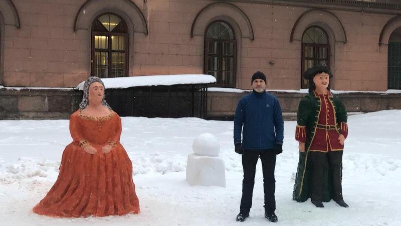 Во дворе гимназии на Восстания слепили снежных Петра I и Елизавету Петровну