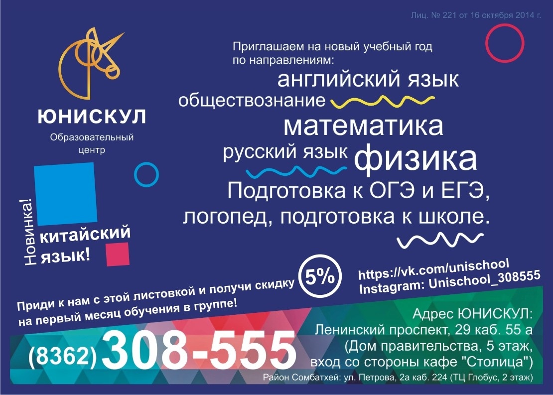Наступил февраль, и мы хотим рассказать вам о том, как этот месяц пройдет в ЮНИСКУЛ https://vk.com/unischool. Во-первых, в феврале учащимся нашей школы предстоит пройти пробное тестирование по формату международных кембриджских экзаменов. Это важное событие, которое позволит понять, насколько учащиеся готовы к реальному экзамену. Пожелаем им удачи! Во-вторых, мы объявляем набор в новые группы китайского языка для начинающих. Занятия вот-вот начнутся, и еще есть места, поэтому вы можете записаться сами и записать своих детей. Конечно, в феврале два важных праздника, которых все мы очень ждем: День Защитника Отечества и День всех влюбленных. Это значит, что в группах преподаватели будут проводить занятия, посвященные этим дням. Конечно, будут и другие события, и о них вы узнаете в наших следующих статьях, группе в ВК и в Инстаграме. Напоминаем наш телефон, по которому вы можете нам позвонить и записаться на занятия по тем предметам, которые вас интересуют: 308-555