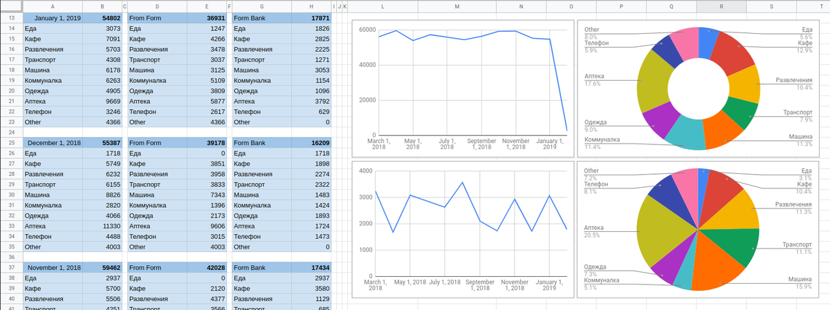 Мы должны иметь возможность посмотреть любые свои расходы. За любой месяц. Быстро построить любой график. Например, сколько мы тратим на машину в этом месяце по сравнению с тем, что было два года назад. Или сколько мы тратим на еду за последние 6 лет.