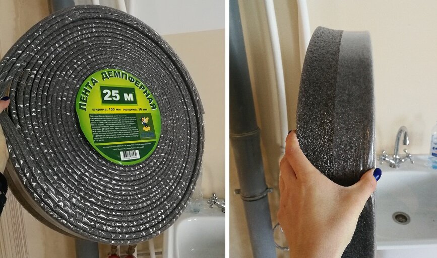В современных новостройках (даже кирпичных многоэтажках) есть проблема шумоизоляции межэтажных перекрытий и стен, но я ни как не ожидала того, что в квартире будет такой активный шум от слива канализации от соседей сверху. В квартире два стояка канализации. Один в сан.узле, второй на кухне. Т.к. ремонт начали именно с кухни, о шумоизоляции канализационного стояка на кухне я и хочу рассказать. При выборе шумоизоляционного материала рассматривали следующие вариант: Не смотря на то, что трубу канализации "прятали" в короб из гипсокартона, использовать минеральную вату не стали, т.к. демпферная лента была привлекательней в плане простоты монтажа. В итоге был куплен вот такой вариант шумоизоляции: Цена: 692р. за 25м.п. Фото ДО: Фото ПОСЛЕ: Стояк высотой 2,5м. и диаметром 0,11м обмотали демпферной лентой в два слоя. Лента имеет целлофановый край, который обеспечивает противоскольжении при намотке ленты внахлест. Демпферная лента не плохо справилась с шумоизоляцией стояка канализации. Короб и
