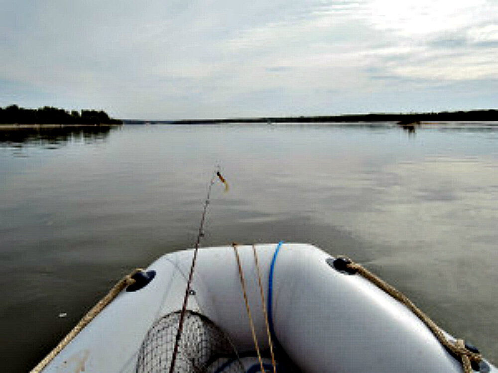 И я решил продолжать поиски. Следующую ночь переночевал уже за Почтой, но все пригодные для моей рыбалки места были заняты отдыхающими или рыболовами. Спустился еще ниже к Успенке, но это не принесло удачи. Судак не клевал. Пришлось дрейфовать дальше в низовья до Ташары и на протоке Луговой на завороте реки я нашел, как мне показалось, не занятое место для рыбалки. Подъехал, разгрузился, поставил два экрана и стал на лодке завозить груз для резинки. Сбросил груз метрах 35 от берега. Подъехал к берегу и стал натягивать резину, но почувствовал глухой зацеп.